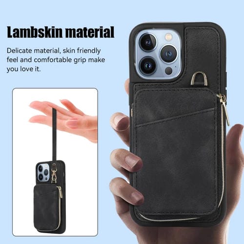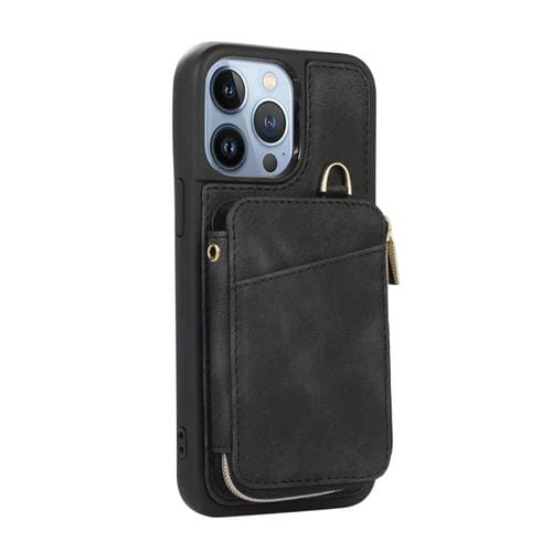 Funda para Teléfono iPhone 13 Pro Max Zipper Card Bag Contraportada (Negro)