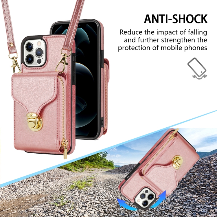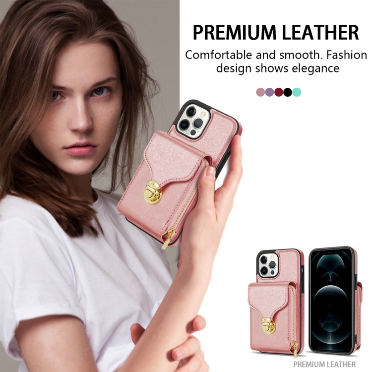 Funda para iPhone 13 Pro Max Zipper Hardware Card Wallet Phone Case (Rose Gold)