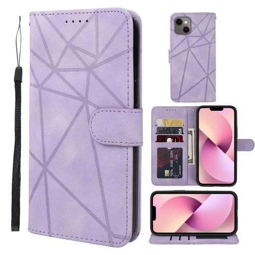Funda para iPhone 13 Skin Feel Cuero con Líneas Geométricas (Púrpura)