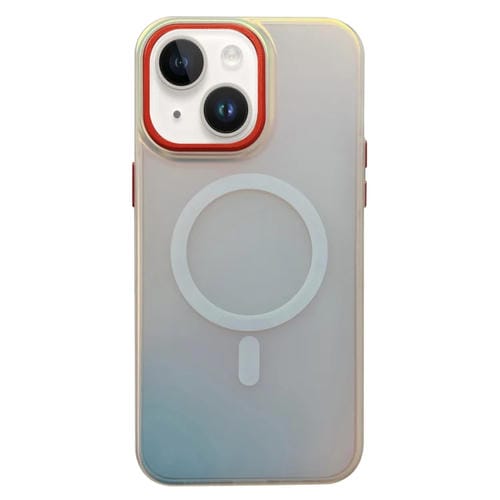 Estuche para Teléfono iPhone 14 Magsafe con Marco de Protección de Lente Metal Láser (Rojo)