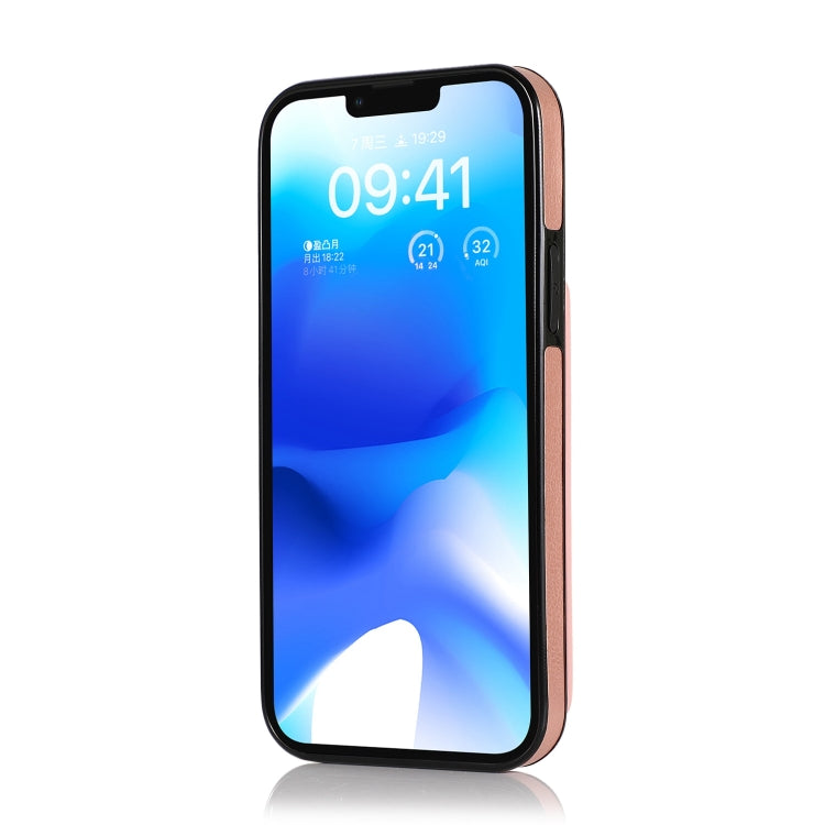 Funda de teléfono para iPhone 14 Pu + TPU a prueba de golpes (Oro Rosa)