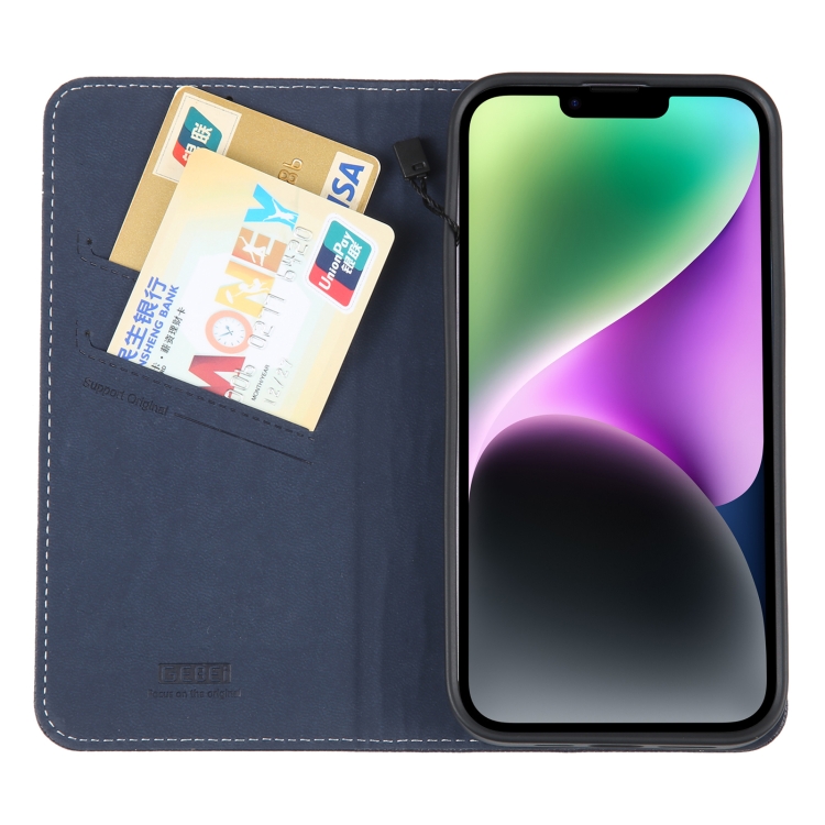 Estuche para Teléfono Gebei iPhone 14 Cuero con Tapa Horizontal de Grano Superior (Azul)