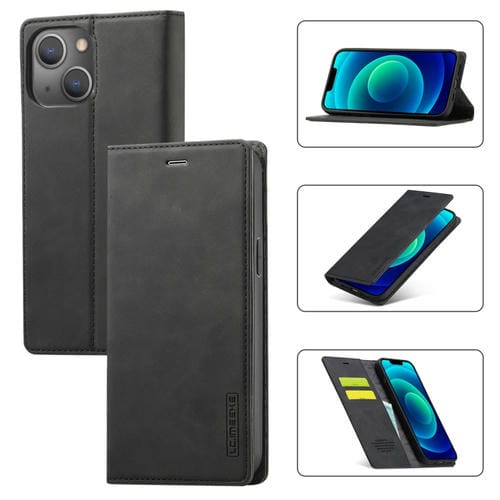 Estuche para Teléfono Lc.Imeeke iPhone 14 Cuero Magnético con Soporte y Billetera (Negro)