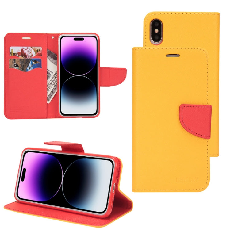 Funda para iPhone 14 Mercury Contrast Color Splicing Leather Phone Case (Amarillo)