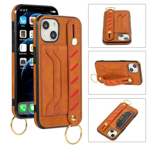 Funda de Cuero Muñequera Cartera para iPhone 14 (Amarillo)