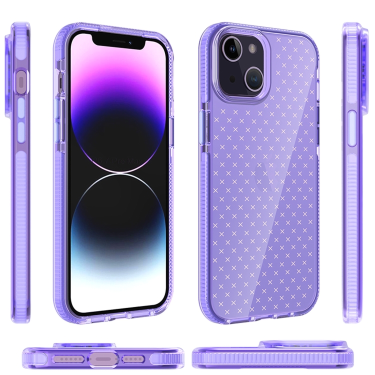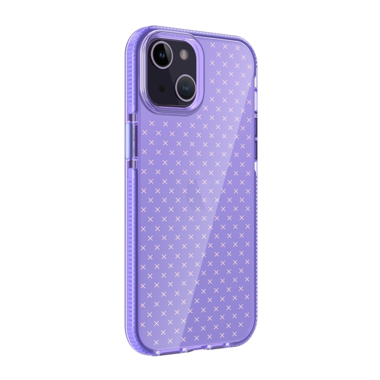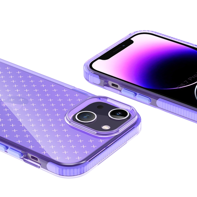 Funda de Teléfono TPU iPhone 14 Patrón de Cuadrícula (Púrpura)