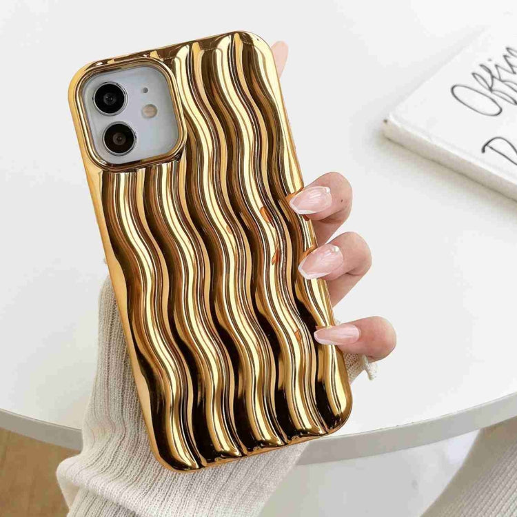 Funda para iPhone 14 Plating 3D Water Wave Texture Phone Case (Oro)