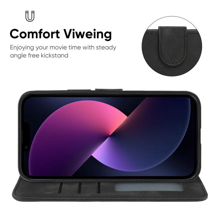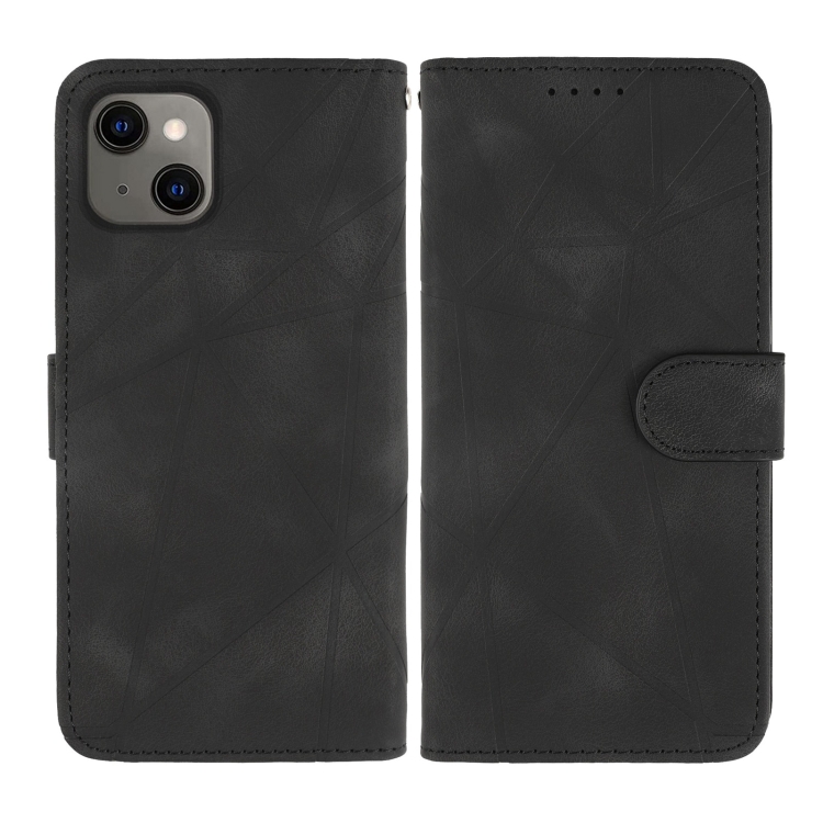 Funda para iPhone 14 Plus Skin Feel Cuero con Líneas Geométricas (Negro)