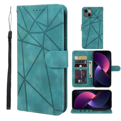 Funda para iPhone 14 Plus Skin Feel de Cuero con Líneas Geométricas (Verde)