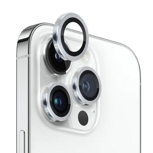 Lente de Cámara Vidrio Templado Northjo para iPhone 14 Pro y 14 Pro Max con Película de Anillo de Metal (Plata)