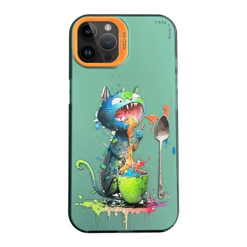 Funda para teléfono iPhone 14 Pro Max Cartoon Animal Graffiti PC + TPU (Gato Azul)