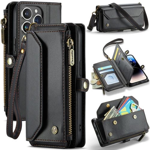 Funda para iPhone 14 Pro Max Caseme C36 Cartera con Cremallera y Ranuras para Tarjetas Cuero Antirrobo Rfid (Negro)