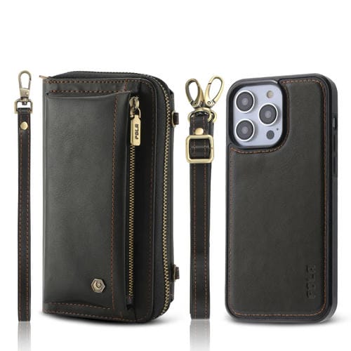 Funda de Cuero Crossbody para iPhone 14 Pro Max con Billetera y Cremallera Multifuncional (Negro)