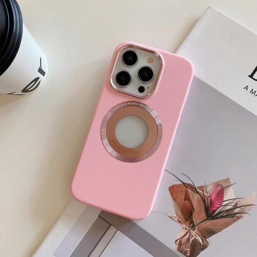 Funda Magnética de Silicona con Marco de Metal para iPhone 14 Pro Max (Rosa)
