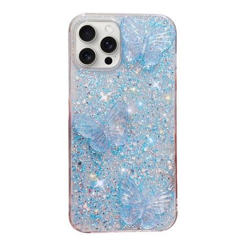 Funda para Teléfono iPhone 14 Pro Max TPU Epoxi Mariposas Cristal Lentejuelas Estrelladas (Azul)