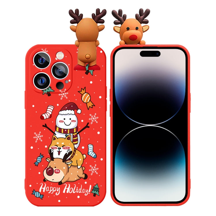 Funda para teléfono TPU Suave para iPhone 14 Pro Max con Muñeco de Nieve y Relieve de Ciervo (Muñeco de Nieve y Ciervo)