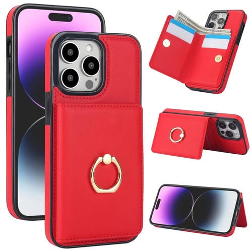 Estuche para teléfono iPhone 14 Pro con soporte para anillo y tarjeta RFID antirrobo (Rojo)
