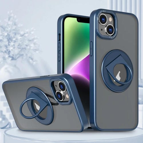 Funda para Teléfono iPhone 15 Anillo Giratorio con Soporte Magnético (Azul)