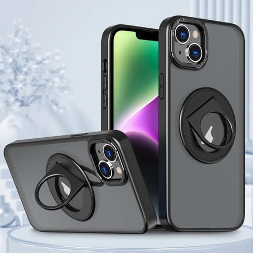 Funda para Teléfono iPhone 15 Anillo Giratorio con Soporte Magnético (Negro)
