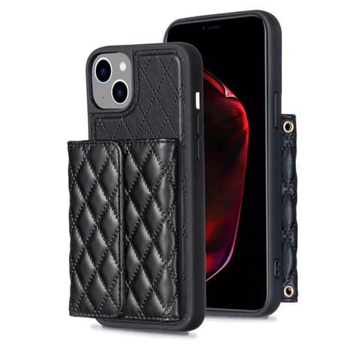 Funda Cartera iPhone 15 Rhombic Leather Horizontal (Negro)