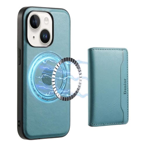 Funda para Teléfono Denior iPhone 15 con Billetera Desmontable Magsafe Cuero Textura Piel de Vaca (Azul)