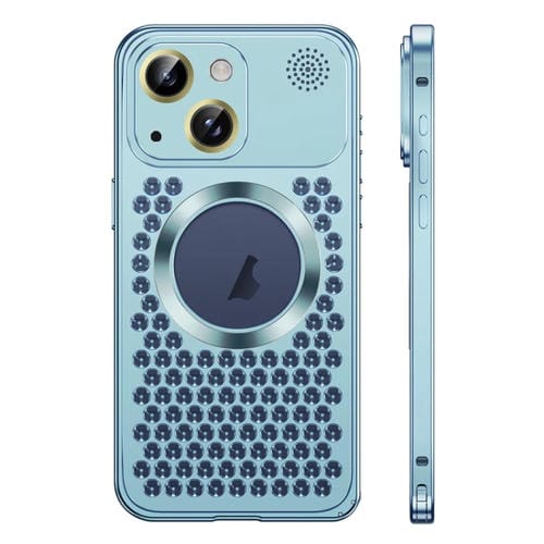 Estuche para Teléfono iPhone 15 Metal Magnético Magsafe Aromaterapia Hebilla de Resorte (Azul)