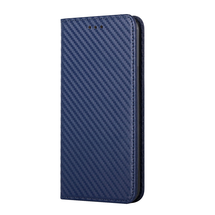 Funda de Teléfono iPhone 15 Cuero con Soporte y Textura de Fibra de Carbono (Azul)