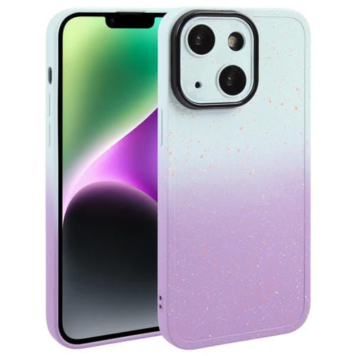 Funda de teléfono para iPhone 15 silicona estrellada degradada con Película de Lente (Blanco Púrpura)