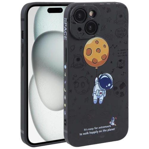Funda para Teléfono iPhone 15 Silicona Borde Recto Patrón Astronauta (Negro)