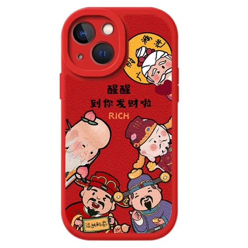 Funda para Teléfono iPhone 15 Textura Cuero de Cordero Diseño Año Nuevo (Get Rich)
