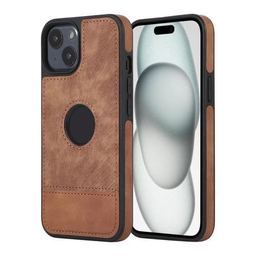 Funda para Teléfono iPhone 15 Pu con Recorte Hueco y Costura con Empalme (Marrón)