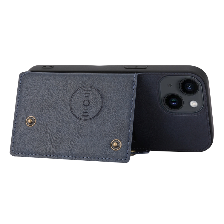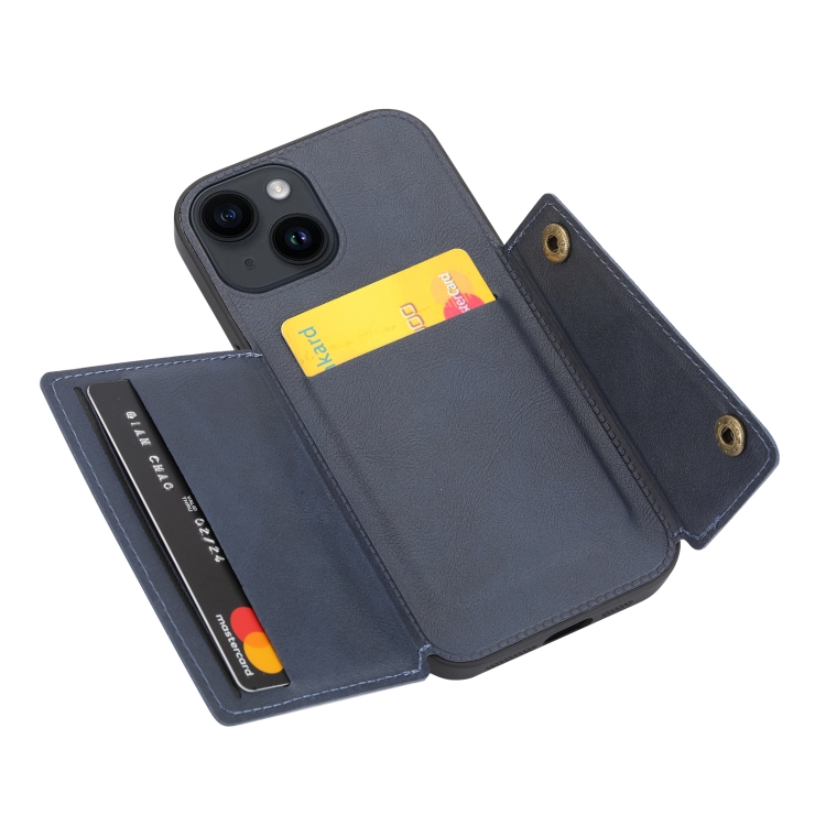Funda para Teléfono iPhone 15 Pu + TPU con Ranuras para Tarjetas y Doble Hebilla (Azul)