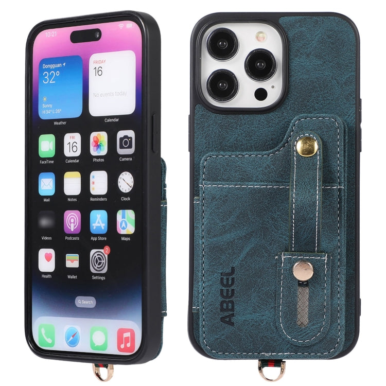 Funda para iPhone 15 Plus Abeel Litchi Texture Card Bag PU Phone Case (Azul)
