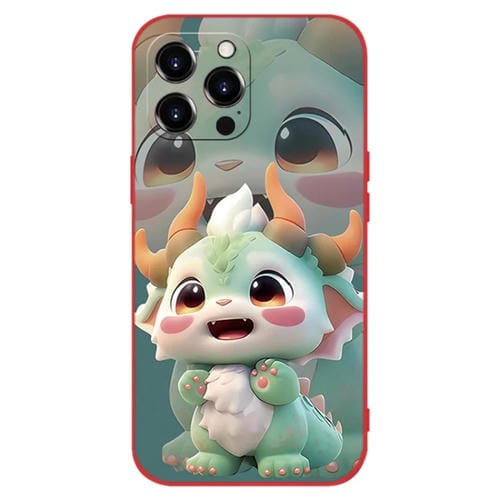 Caja de Teléfono iPhone 15 Pro Silicona a Prueba de Golpes (Roja) (Dragón Verde)