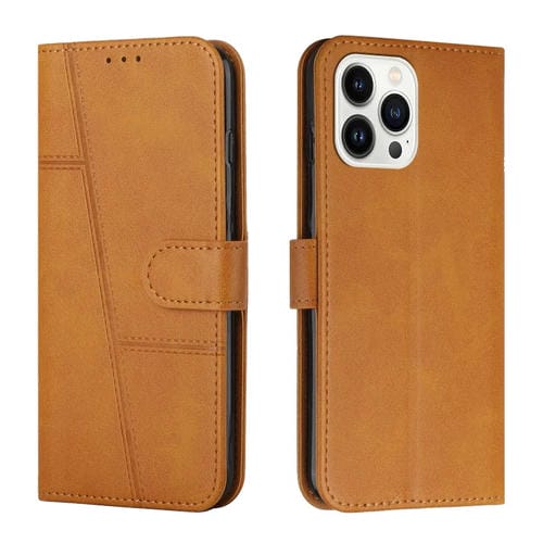 Funda de Cuero iPhone 15 Pro Costura Becerro Textura Hebilla (Amarillo)