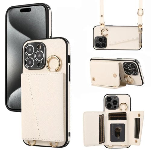 Funda Trasera Crossbody Ring Wallet para iPhone 15 Pro de Cuero (Blanco)