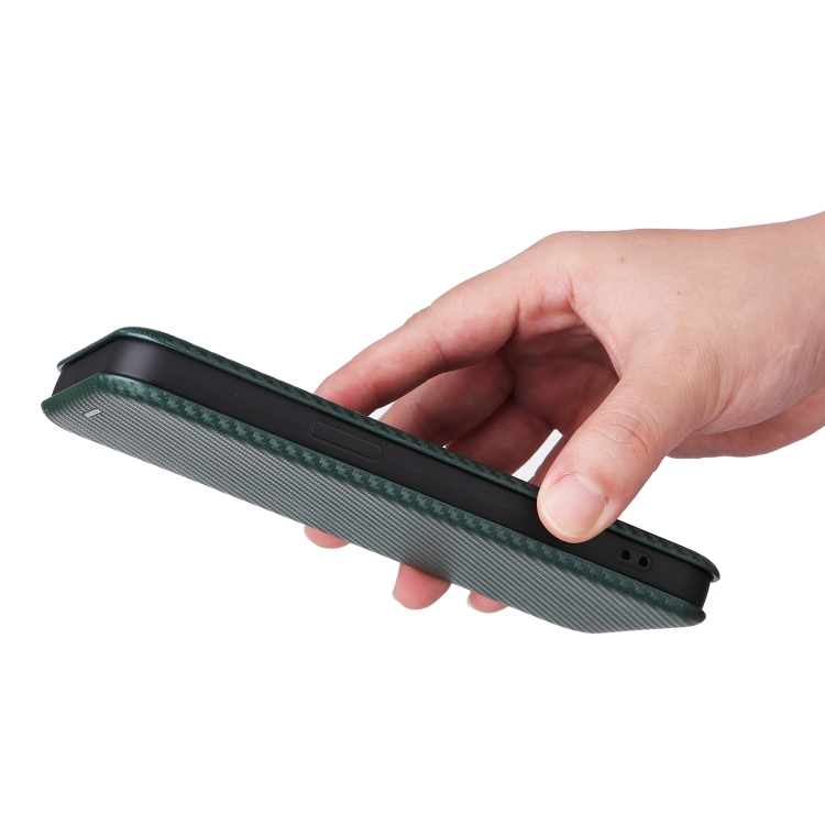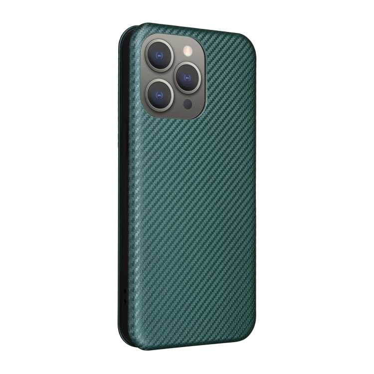Funda para iPhone 15 Pro Cuero con Tapa Textura Fibra de Carbono (Verde)