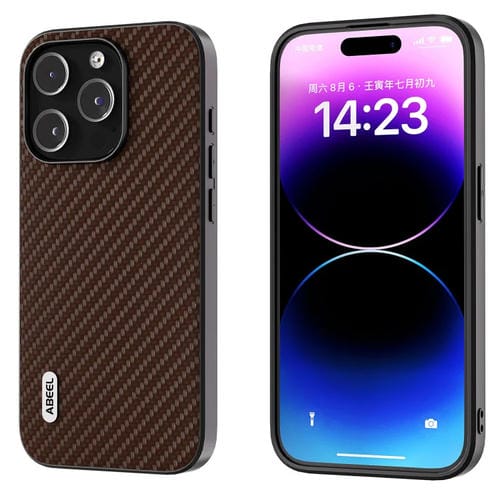 Funda Protectora Abeel para iPhone 15 Pro con Textura de Fibra de Carbono (Marrón Oscuro)