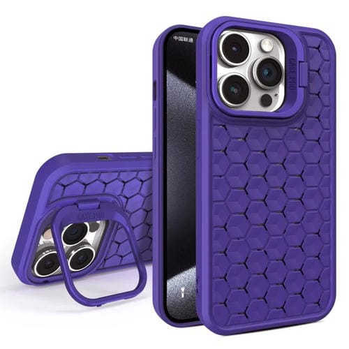 Funda para Teléfono iPhone 15 Pro Honeycomb Radiating Lens Holder con Magsafe (Púrpura)