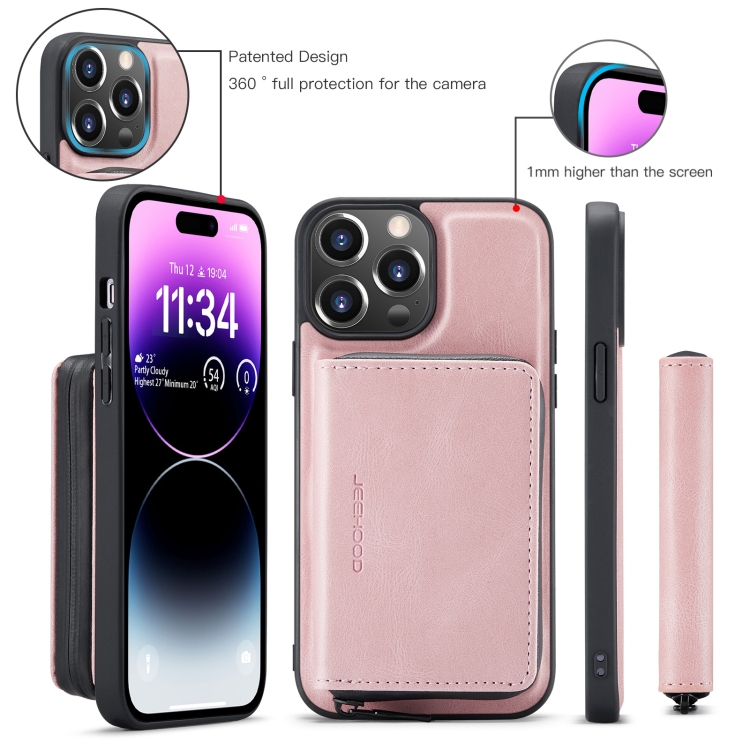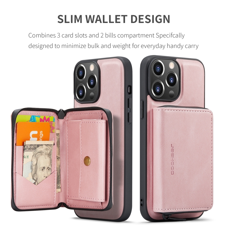 Funda para Teléfono Jeehood iPhone 15 Pro Cuero con Billetera y Cremallera Magnética (Rosa)