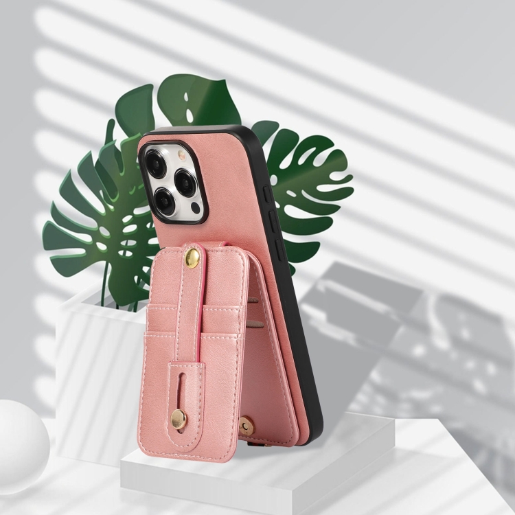 Funda para Teléfono iPhone 15 Pro Max Bolsa para Tarjeta Rfid Pu Textura Piel de Vaca (Rosa) 02 unidades