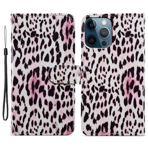 Estuche para teléfono iPhone 15 Pro Max Cuero con Dibujo Coloreado (Leopardo)