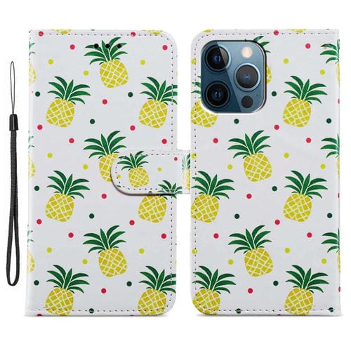 Estuche para Teléfono iPhone 15 Pro Max Cuero con Dibujo Coloreado (Piña)