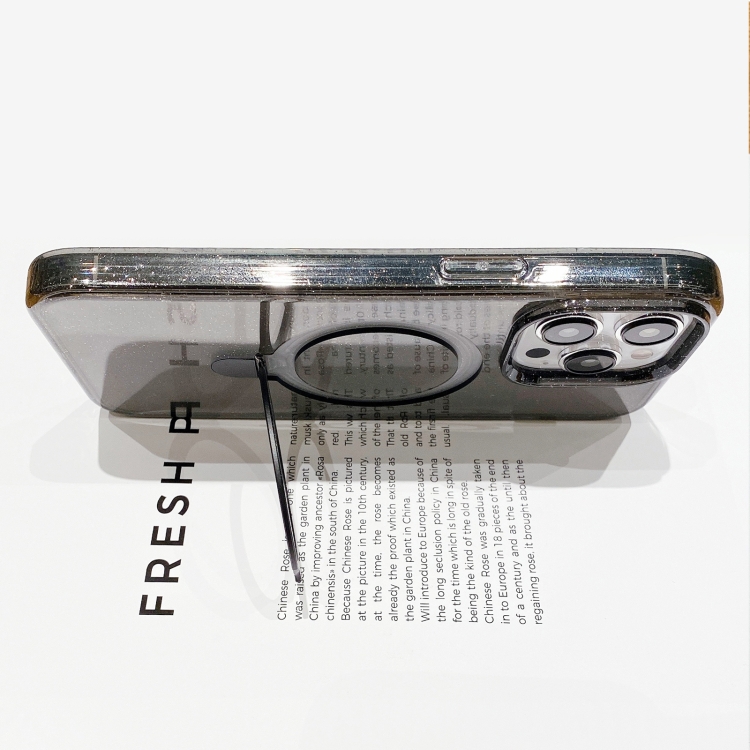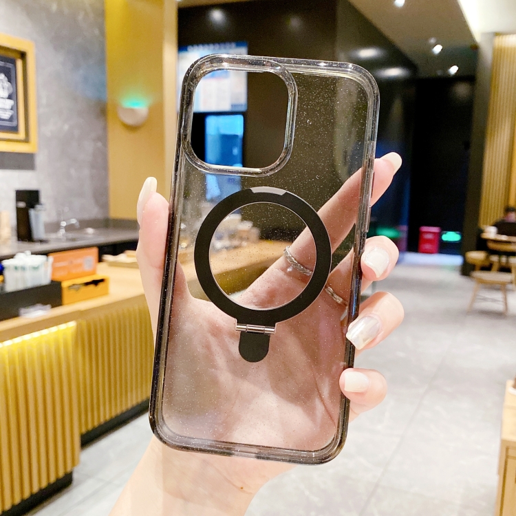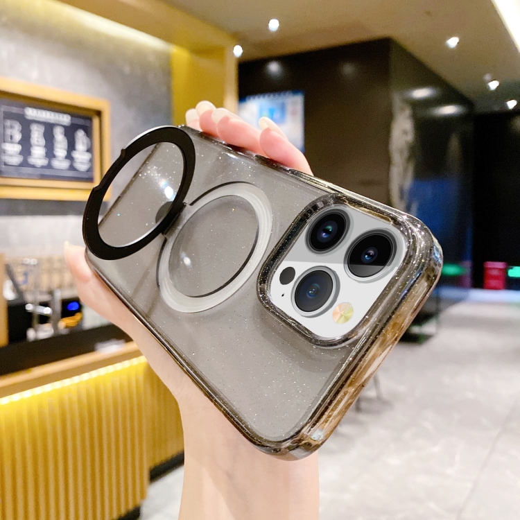 Estuche Magnético para Teléfono iPhone 15 Pro Max Glitter Magsafe con Soporte (Negro)