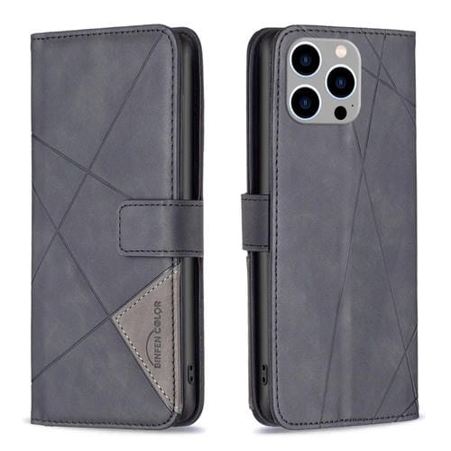 Funda para iPhone 15 Pro Max Hebilla Magnética Rombo Textura Cuero (Negro)