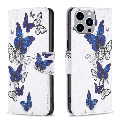 Funda de Cuero para Teléfono iPhone 15 Pro Max Flip Patrón de Dibujo Coloreado (Mariposas)