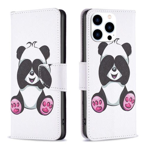 Funda de Cuero Flip para iPhone 15 Pro Patrón de Dibujo Coloreado (Panda)