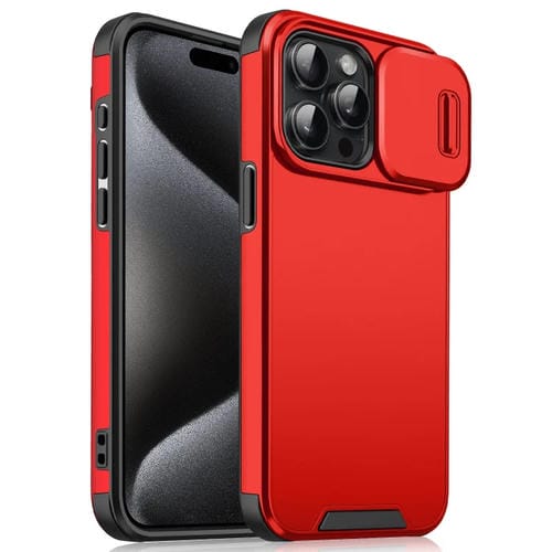 Funda para Teléfono iPhone 15 Pro Sliding Camshield TPU + PC (Rojo)