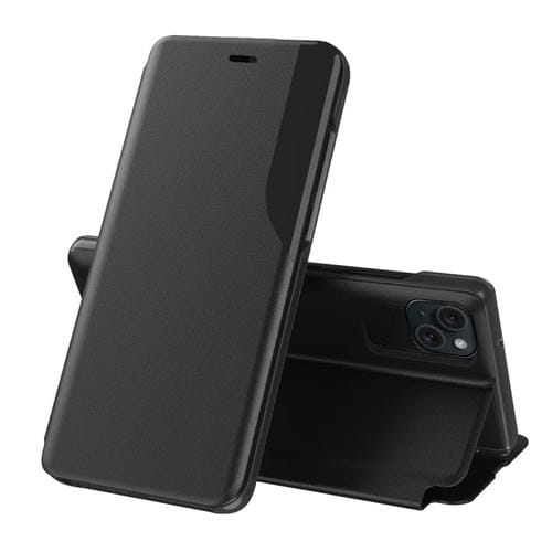 Funda para iPhone 15 Side Display Flip Leather Phone Case (Negro)