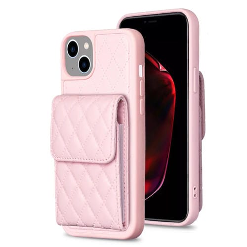 Funda Vertical Wallet Rhombic Leather para iPhone 15 (Rosa)